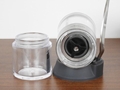 Akirakoki 正晃行這支 MCM-1T 迷你手搖磨豆機尺寸大小很剛好,握起來很舒服,而且有附矽膠防滑底座,固定在桌上磨豆子的時候特別穩固,採用陶瓷磨心,304不銹鋼軸心及外殼部件,搭配透明的咖啡豆槽、研磨咖啡粉罐,整體質感相當好,價格相對實在,臺灣製造更安心。